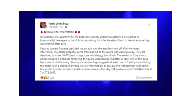 The security guard for East Lake Village was assaulted by a group of teens in the parking lot of the community club house. Community members were upset they were not informed of the violence.